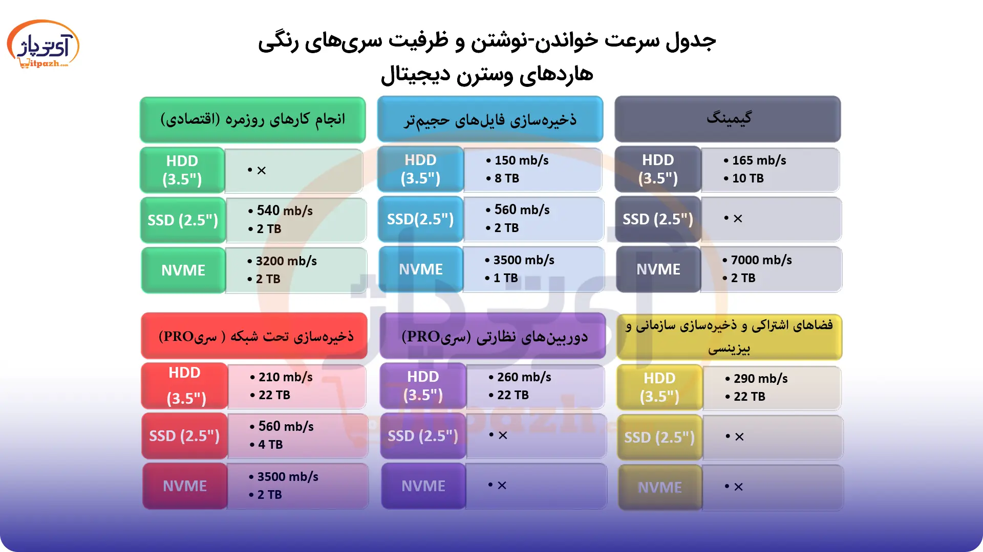 لازم میدانیم پیش از خرید هارد اینترنال وسترن دیجیتال شما را با این دستهبندیها آشنا کنیم تا بتوانید خریدی امن و مناسب با نیازتان داشته باشید.
