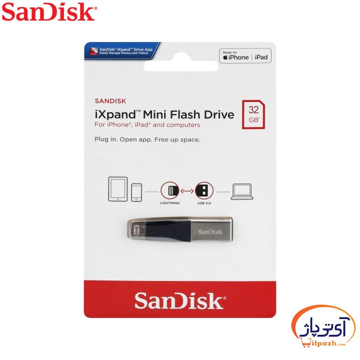 برای خرید فلش مموری Lightning سن دیسک 32 گیگابایت مدل SanDisk iXpand mini در مشهد میتوانید از وبسایت ای تی پاژ استفاده نمایید.